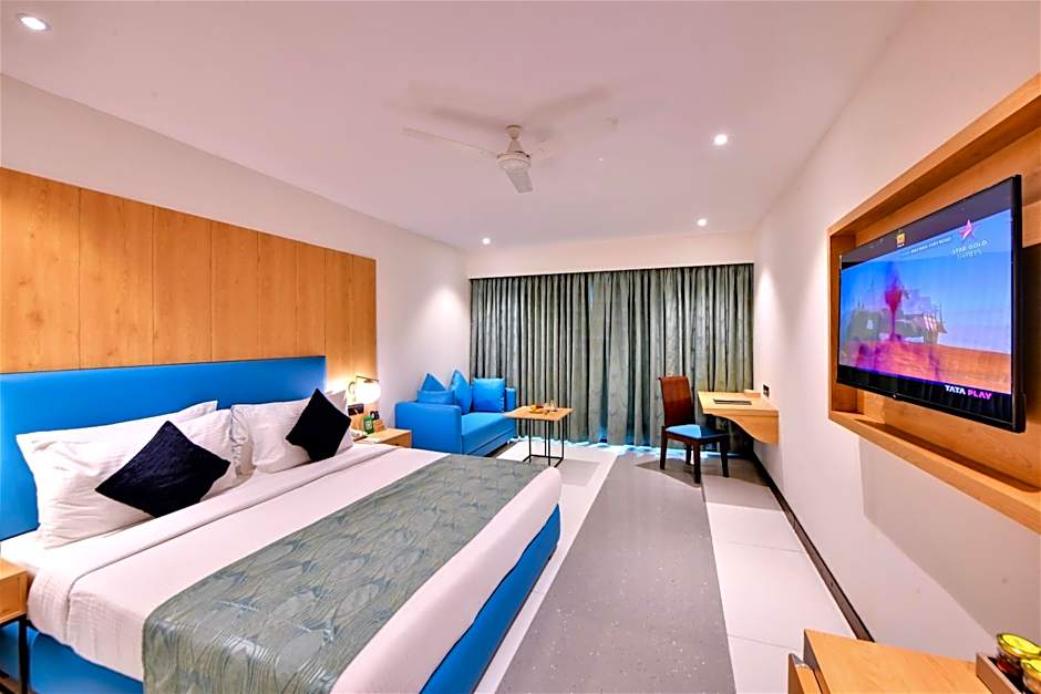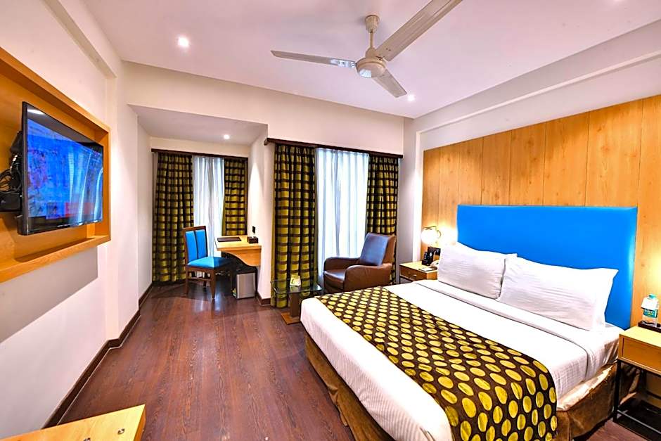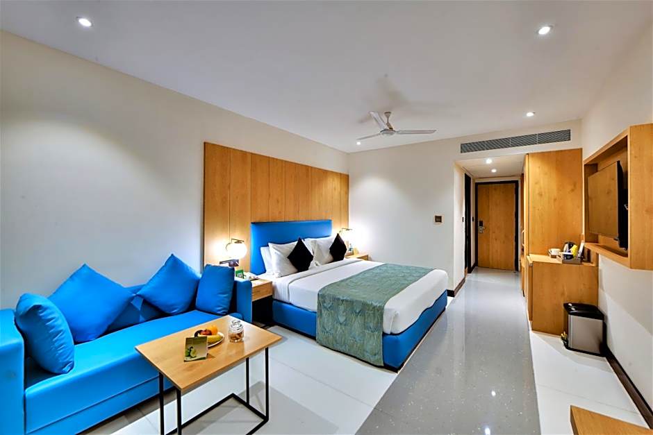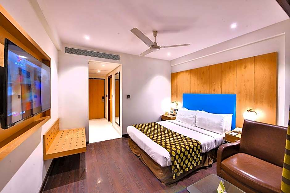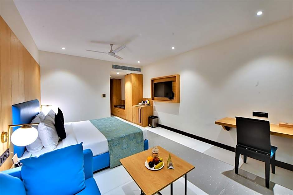 Air-conditioned room with tea/coffee maker, mini-bar, DVD player and safe.